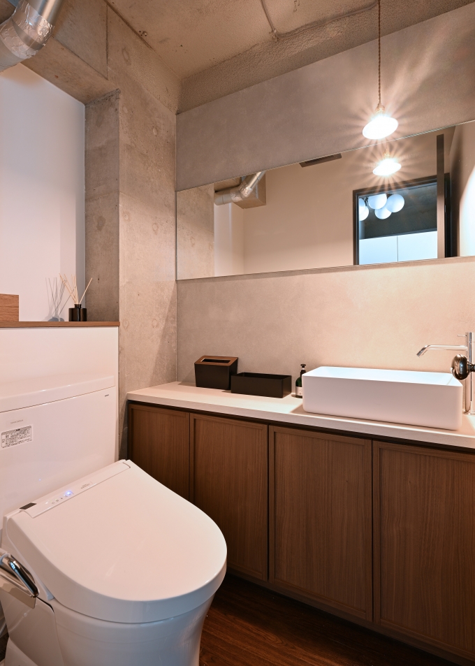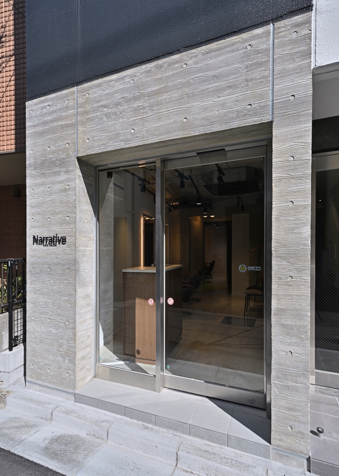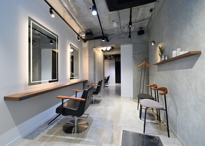 店名 Narrative 場所 神奈川県川崎市幸区中幸町 竣工 2024年03月 業態 美容室 面積 11坪 Designer 菊地 Memo 年齢層が高めのターゲットとのことで、濃い色のカラーを使って落ち着きのある空間にしました。